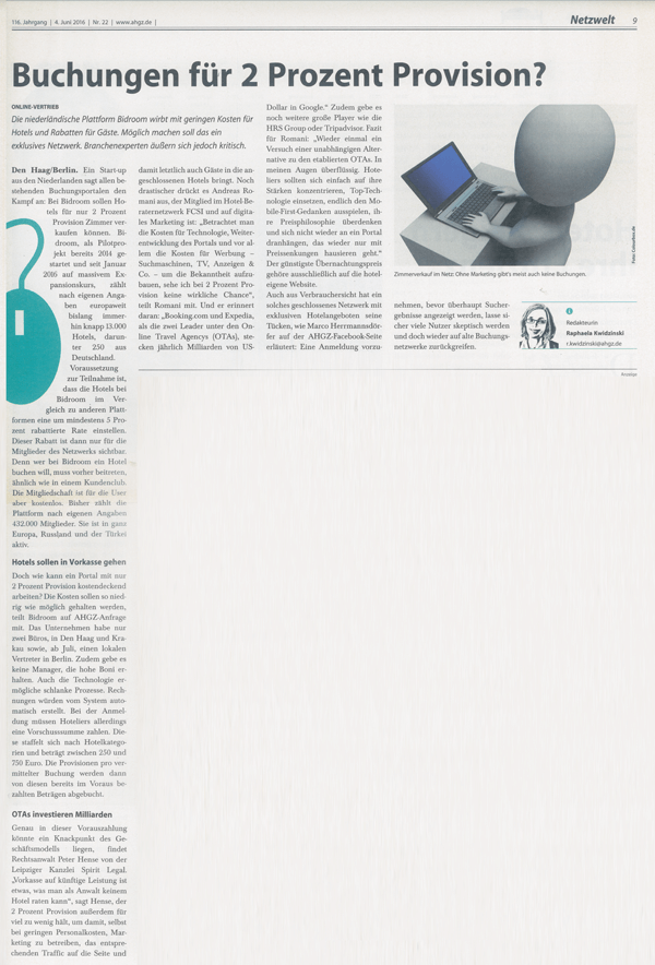 „Die niederländische Plattform Bidroom wirbt mit geringen Kosten für Hotels und Rabatten für Gäste. Möglich machen soll das ein exklusives Netzwerk. Branchenexperten äußern sich jedoch kritisch."