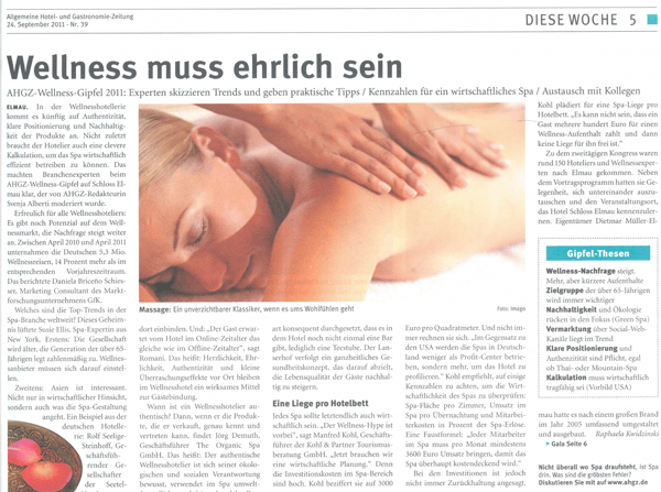 „AHGZ Wellness-Gipfel 2011: Wellness muss ehrlich sein“